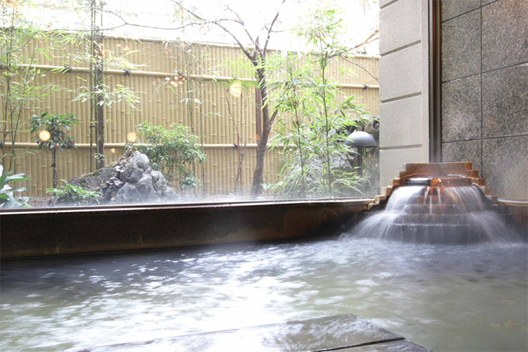 鳥取温泉の恵みを受けた、温泉大浴場「おしどりの湯」。ナトリウム硫酸塩・塩化物泉で、さらっと優しく肌をなめらかにし、ポカポカと体の芯から温めてくれます。中庭を眺めながら上質な温泉に癒され、心からホッとできるひとときをお過ごしください。