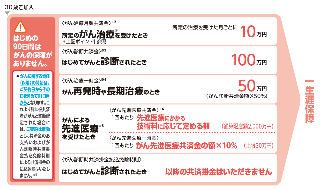- 3 がん診断共済金は共済期間を通じて1回のみ支払われます。